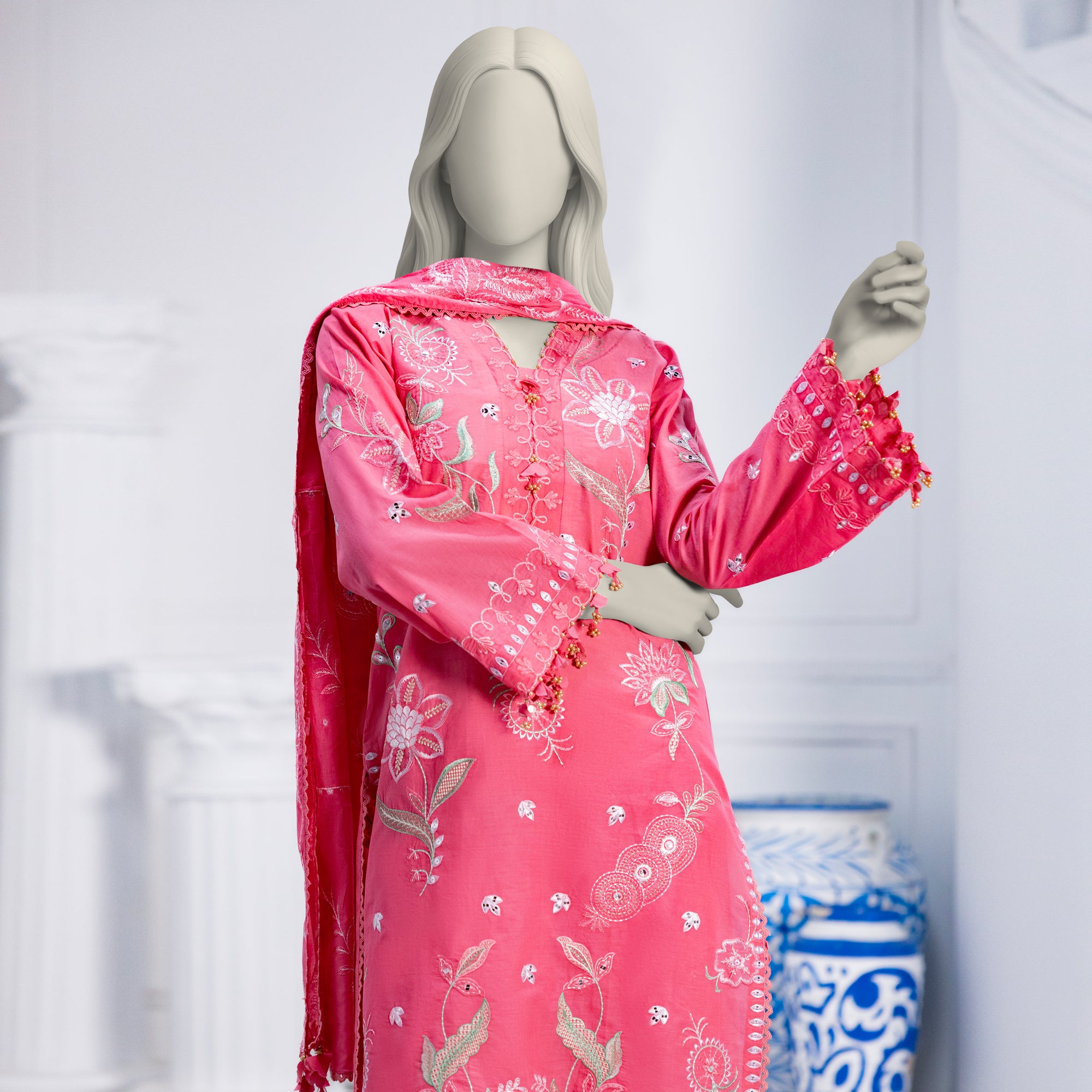 PINK LAWN EMBROIDERED KURTA