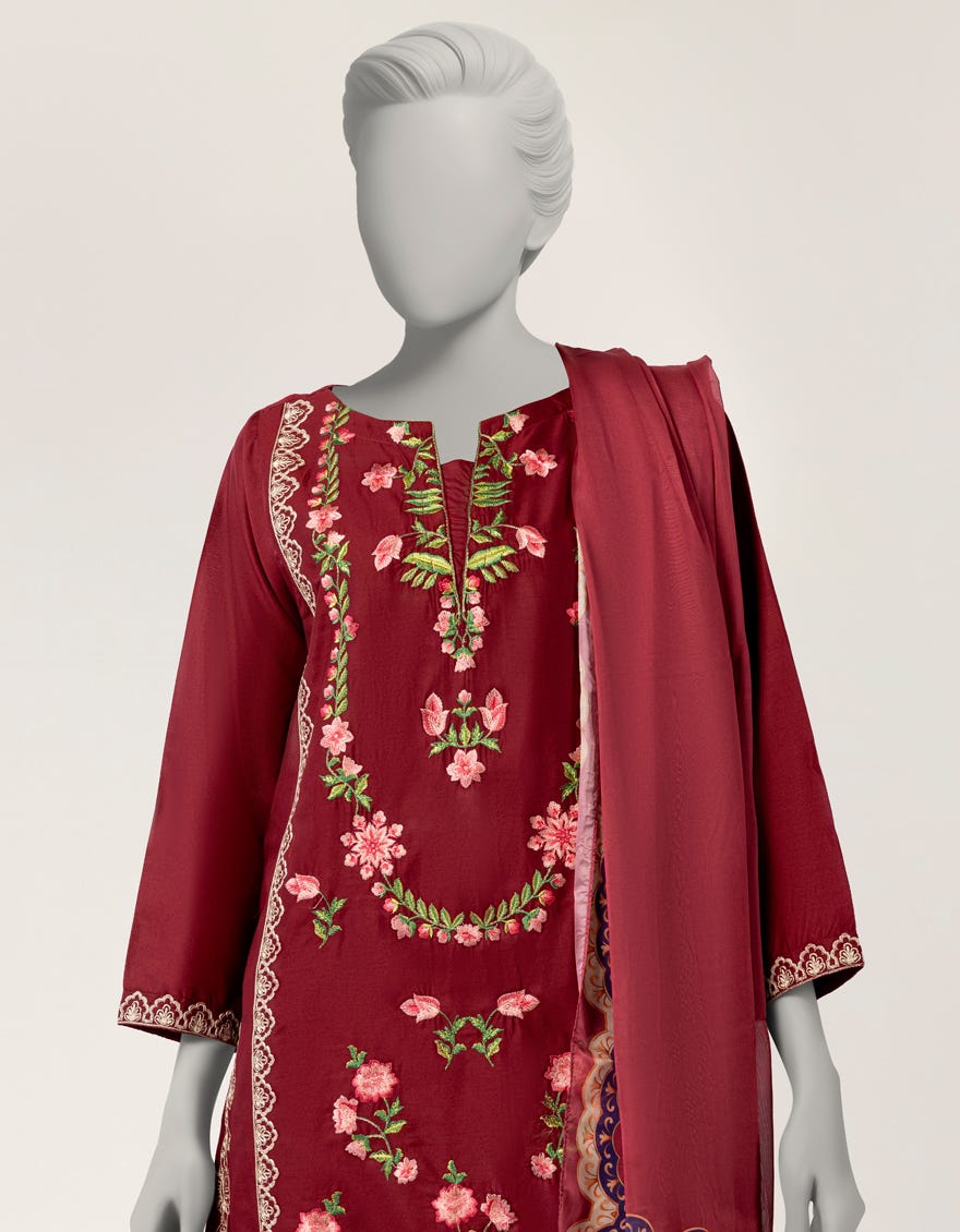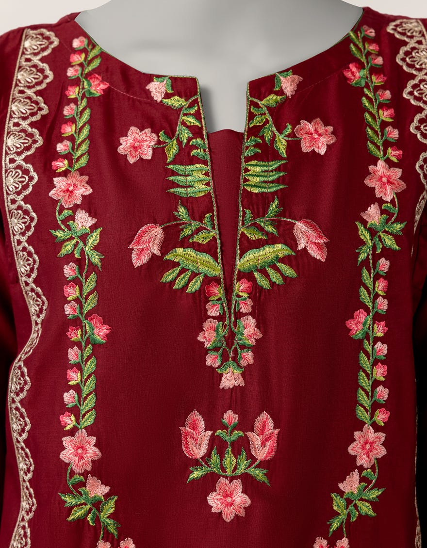 maroon lawn embroidered stitched 3pc